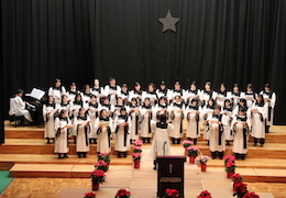 12月7日に、学園チャペルにてPTAクリスマス礼拝とチャペルミニライブを開催いたしました。礼拝では、ご参加くださった皆様と共に、オルガン演奏、聖書朗読、チャプレンのお話に耳を傾け、賛美歌を歌い、イエス様のご降誕を静かにお祝いするひと時となりました。PTA聖歌隊にご参加くださった皆様、すてきな賛美をありがとうございました。ミニライブでは、ESS部、合唱部、ダンス部の生徒さん達が、見ごたえのあるすばらしい舞台パフォーマンスを披露してくれました。ご協力いただきましたおひとりおひとりに心より感謝いたします。