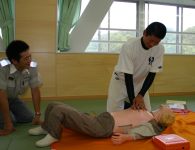 清教学園教育の大きなテーマのひとつ、「生命と学校安全を考える」の一環として、今年も、総合体育館で救命講習会が開かれました。教員17名、文化部・運動部代表の生徒25名が講習会に参加。5つのグループに分かれて、河内長野市消防署員から心肺蘇生法の説明を受け、実技講習を行いました。今年度から学内に4機の自動体外式除細動器(AED)が設置されているだけに全員が緊張感をもって受講しました。このAEDは、総合体育館準備室、体育館準備室、保健室、M棟監督室(グラウンドにいちばん近い場所)に設置されており、学内だけでなく地域の安全にも役立てることが出来たらと考えています。