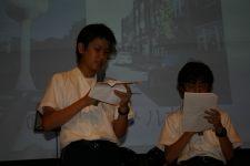 カーメル生と清教学園中学生の交流会が催されました。カーメル生へのインタビューや、地歴部のカーメル紹介、中2有志グループによるバンド演奏などが行なわれ、盛り上がりました。最後は生徒会主催の○×クイズで、勝ち残ったカーメル生に記念品が贈られました。