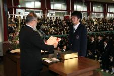 書道部や吹奏楽部をはじめ、多くの生徒が教科や部活動の活躍で表彰されました。舞台袖には表彰を控えた生徒が目白押しで、誘導を担当する先生も嬉しい悲鳴です。