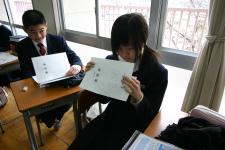 高3情報科の集中授業が、3月1日から始まりました。他のすべての課程を既に終え受験も一段落した卒業間近の生徒達にとって意義のある授業を追求し、コミュニケーションやデータ取材とルポにおける技法等に重点をおいた形態をとっています。主なテーマは「マスメディアにおける事実と真実」「知的財産権に関する議論の核心」「音のない世界(情報の根源に迫る)」などです。3月17日までの期間に全員が受講を終える予定です。