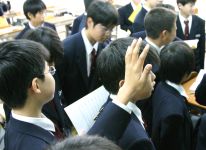 上級生にとって始業式は新しい学年で新しいクラスが発表される時です。期待に胸をふくらませた生徒達が張り出された紙の回りに集まっています。
