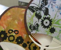 高3の美術で作っていた手作り団扇が完成しました。周辺部に補強の和紙を貼り、アクセントに黒紙で思いおもいの切り絵を貼りました。良い出来栄えに、使うのがもったいないですね。