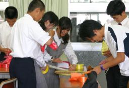 終礼時のわずかな時間を利用して、体育大会の応援歌と手拍子の練習をしました。応援歌は流行曲の替え歌ですが、筆者にはメロディを聞いても、元歌がさっぱりイメージできず、世代の差を感じました。
