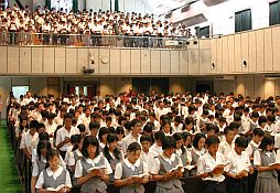 中学生に、9月の月間行事予定表が配布されました。生徒たちは、早速デイリーノートにスクラップしていました。9月は三日の宿題テストに始まり、暗唱大会、弁論大会、学園祭と行事が目白押しです。