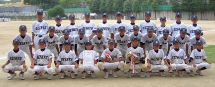 中学校野球部は、19日(木)から開催されていた新チーム最初の南河内地区総合体育大会において、2回戦・初芝富田林中学校に7−0〔5回〕で、3回戦・松原第三中学校に9−2〔5回〕で、準々決勝・長野中学校に6−0で、準決勝・河南中学校に4−3で、決勝戦・松原中学校に9−0で勝利し優勝しました。これで、南河内地区総合体育大会は4年連続の優勝になりました。次は、9月中旬から始まる秋季大会です。応援お願いします。