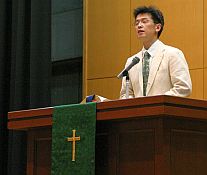今日は中学生の合同礼拝の日。本校の井上良作先生が「イエス様の心に似る」と題し、「たとえ大地震のようなことが起こっても、回りで一番困っている人、弱い立場の人のことを考えて行動しましょう」と話されました。