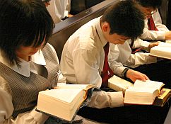 清教学園の朝は、読書の時間から始まります。8時25分から10分間の読書を経て、礼拝を持ち、神様に感謝して、授業を始めます。朝の礼拝は開校時から、読書の時間は1995年4月から始まりました。朝の静謐なひとときが、豊かな心を育みます。