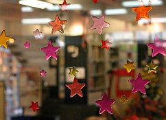 クリスマス飾りは、今では種類がとても豊富です。ガラス窓にはゼリー状のステッカーが、掲示板にはキルティングのタペストリーが、机上にはツリーが・・・・日々クリスマスが近づくことを皆でお祝いしています。