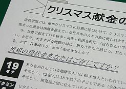 清教学園では、毎年クリスマスの時期に呼びかけて、クリスマス献金を集めさせて頂いてます。集まった献金は困難を抱えている世界中の人の為に使われます。