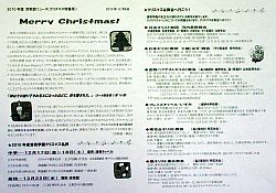 PTAから生徒と教職員にクリスマスカードが贈られました。このカードは、高等部で回収した自販機の紙パックを、インターアクト部と有志の生徒達が切り開いて乾燥させ、障がい者作業所の今川工房で制作されました。生徒達の協力が資源を有効に活用するばかりか、工房の方々を支える活動になっています。カード表面には中山昇先生のスケッチが、裏面には一年間使えるカレンダーが印刷されています。