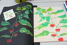 中学1年生は「一版多色版画」に取り組んでいます。水加減一つで刷り上がりが変わり、慎重な作業が肝心です。作業はやっと半ばですが、完成が楽しみです。