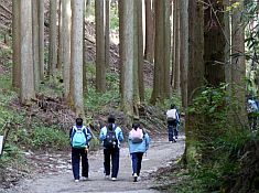 この先は急斜面が続きます。昔の人たちは念仏を唱えながら歩いたのでしょう。・・・念仏坂と呼ばれています。そんな急坂ですが、ニコニコ顔で登るわ、ダッシュで競争するわ、これも毎日、白樫の径を登下校している賜物でしょう。
