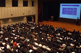 平成23年度公私立学校連携事業「公開授業」(主催:河内長野市教育委員会)が本校を会場にして行なわれ、芝田河内長野市長もお越しになる中、中学社会科の授業を見ていただきました。電子黒板などを活用しながら先進的な授業を展開する清教学園中学校の教室風景には、お越しになられた市内各校の先生方から「美しい流れの授業で、分かりやすさに感心しました」といったお声が聞かれ、創立60年の歴史に根ざした本校の教育創造への熱意を感じていただく機会となりました。