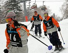数々のアスリート達が、自分の足型を取ってまで、フィットしたシューズやスパイクを使用するのと同様、スキーブーツも足にピッタリ合っていることが大切です。今日はブーツのカットモデルを使って構造を知り、各自が専用のゲージで足のサイズを測りました。中には3センチもサバを読んでいる生徒もいて・・・。