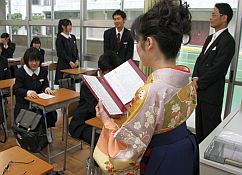 式を前に教室では卒業証書授与の練習をしたり、修学旅行の思い出話に華を咲かしたり、寄せ書きをしたり、担任、副担任が門出の言葉を述べたり・・・朝から目を真っ赤に腫らした先生もいましたね。