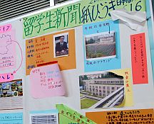 中学職員室横には、留学生新聞「紙ひこうき16号」が掲示されています。今年はドイツからホフマン ローズ ゾフィーさんが、中国から夏沢遠くんが来校し、母国の事を写真やイラストを交え上手に紹介してくれています。ローズさんの地元ハレでは、日本人向けのパンフレットも発行されているみたいですね。