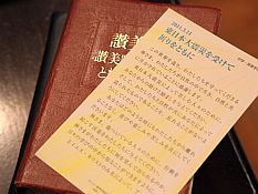 今日は東日本大震災が起こった11日に最も近い礼拝の日です。震災を思い、考え、私達がどう向き合っていったら良いのか、カトリック・プロテスタントの枠を超えて作られた共同の祈りを捧げました。