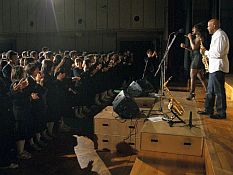 13日、高1学年集会特別企画の「ロン・ブラウン&マキーダコンサート」が清教チャペルで行われました。ロン・ブラウン氏はスティービー・ワンダー、ホイットニー・ヒューストン、ダイアナ・ロス、デューク・エリントンバンドなど、世界一流ミュージシャンのサポートサックス奏者として活躍し、現在も親友のカーク・ウェイラム(Sax)やドク・パウエル(Guitar)等数多くの大物ミュージシャンと共演。2010年 2 月にはワシントン D.Cで開催されたオバマ大統領主催の朝食祈祷会に招かれ演奏しました。マキーダさんは”LA Black Music Award for Best Female Performance of the year2005”を受賞するなどゴスペル・ソウルの女王と呼ばれる実力派R&Bシンガーです。