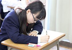 1年生は図形、技術家庭科の試験を、2年生は英語、社会、聖書の試験を、3年生は英語演習、代数、音楽の試験を受けました。