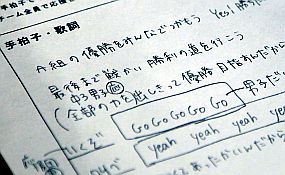 6月3日に行われる体育大会の応援練習が始まりました。チームの手拍子と歌詞を書いたプリントを配布して、先ずは体育大会応援リーダーお手本を見せます。が、リーダーもまだまだ発展途上・・・「初日の今日はこれくらいで」と担任の先生が助け舟を出してくれました。