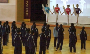 昨年度に続き、OSK日本歌劇団訪問ダンス授業「OSKと踊ろう! Dream on a Dance」(象印マホービン株式会社提供)が行われました。OSK日本歌劇団からは、劇団員の雅晴日先生、朝風まりあ先生、水葉紗衣先生、せいら純翔先生が来校され、中学一年生たちがダンスレッスンを受講させていただきました。はじめは自信のなかった生徒たちも、お手本として披露いただいたプロの綺麗な動きに感心し、一つ一つの動きを優しく丁寧に教えていただいているうちに、踊ること、表現することの楽しさを知ったようです。授業の仕上げとなるラインダンスでは、各グループとも、笑顔いっぱいに、みんなで話し合って決めたオリジナルのポーズをして締めくくっていました。修了後には認定証も手渡され、新学年への進級が間近の生徒たちにとって、4名の先生方と共に過ごした時間は、春のきざしを感じるひとときともなりました。 — 桜咲く国を華やかに彩る<春のおどり>、それが西に東に見られる季節の到来は、もうまもなくです。